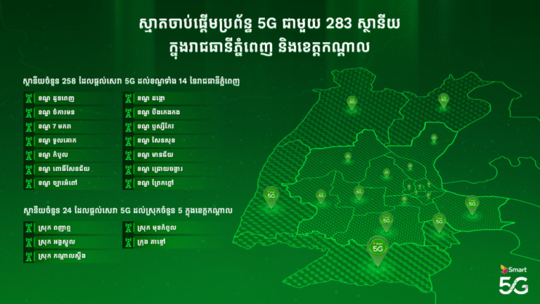 Smart Axiata ដាក់ឱ្យប្រើប្រាស់សេវា 5G ដើម្បីលើកកម្ពស់ការអភិវឌ្ឍសេដ្ឋកិច្ចឌីជីថលកម្ពុជា